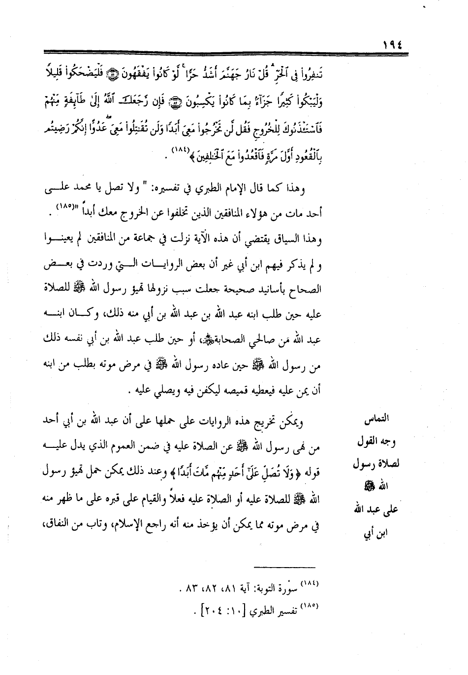 (التماس وجه القول لصلاة رسول الله - صلى الله عليه وسلم - على عبد الله ابن أبي)