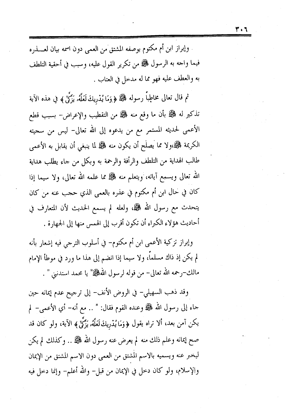 وإبراز تزكية الأعمى ابن أم مكتوم - في أسلوب الترجي فيه إشعار بأنه لم يكن إذ ذاك مسلماً، ولا سيما إذا انضم إلى هذا ما ورد في موطأ الإمام مالك - رحمه الله تعالى - من قوله لرسول الله - صلى الله عليه وسلم - " يا محمد استدنني ".