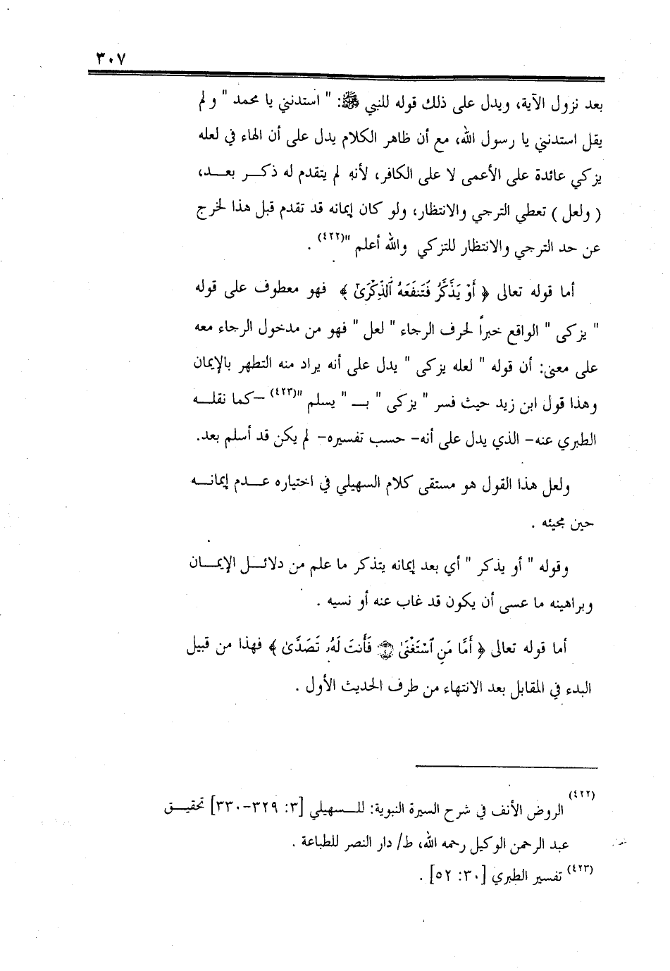 بعد نزول الآية، ويدل على ذلك قوله - رضي الله عنه -: " استدنني يا محمد " ولم يقل استدنني يا رسول الله، مع أن ظاهر الكلام يدل على أن الهاء في لعله يزكي عائدة على الأعمى لا على الكافر، لأنه لم يتقدم له ذكر بعد، (ولعل) تعطى الترجي والانتظار، ولو كان إيمانه قد تقدم قبل هذا لخرج عن حد الترجي والانتظار للتزكي والله أعلم ".