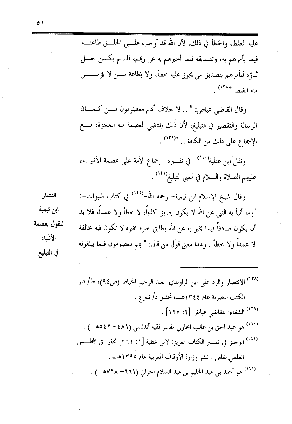 انتصار ابن تيمية للقول بعصمة الأنبياء في التبليغ