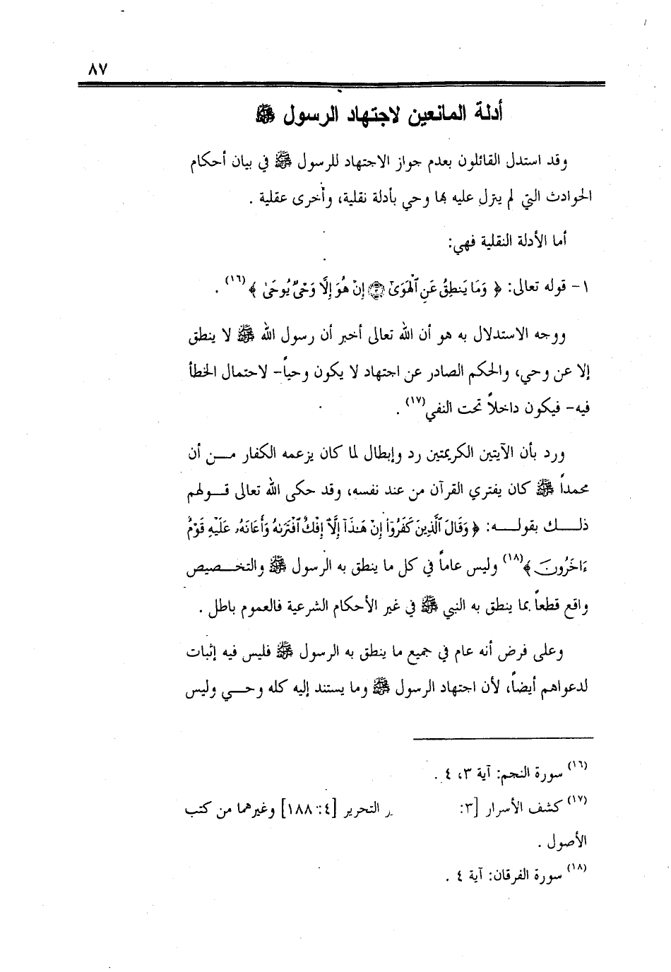 أدلة المانعين لاجتهاد الرسول - صلى الله عليه وسلم -