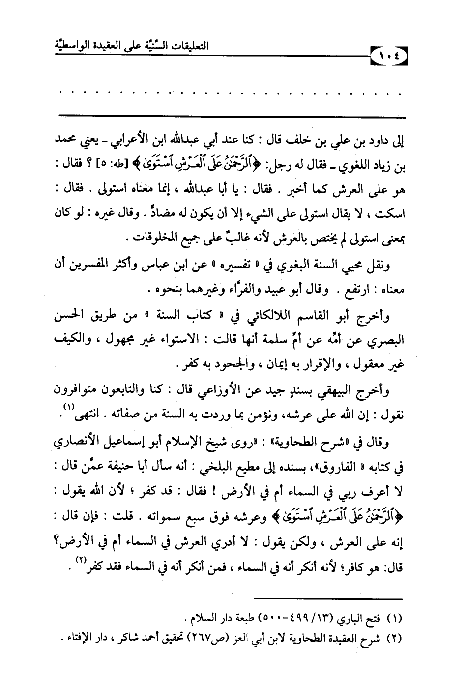 وأخرج أبو القاسم اللالكائي في " كتاب السنة " من طريق الحسن البصري عن أمِّه عن أمِّ سلمة أنها قالت: الاستواء غير مجهول، والكيف غير معقول، والإقرار به إيمان، والجحود به كفر.