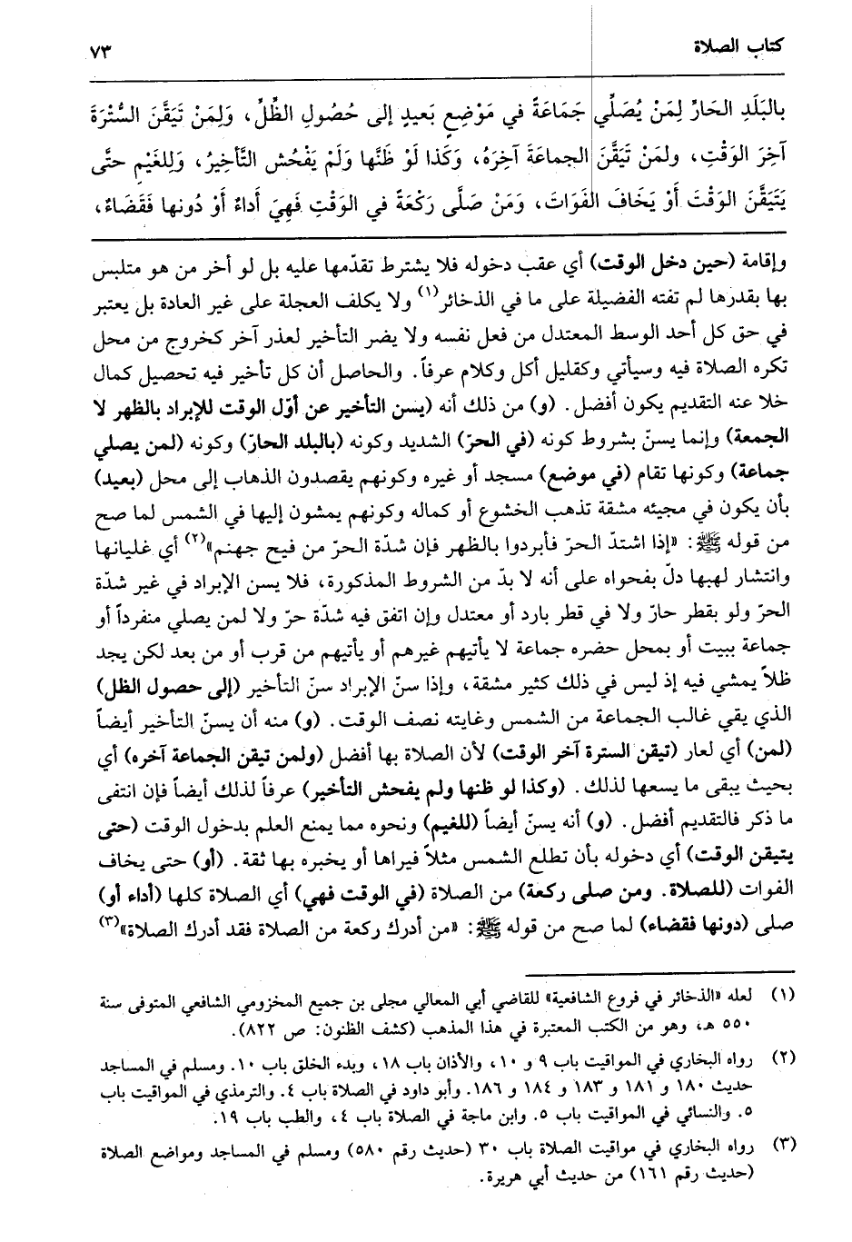 2 رواه البخاري في الوقت باب 9 و10، والأذان باب 18، وبدء الخلق باب 10، ومسلم في المساجد حديث 180 و181 و183 و184 و186. وأبو داود في الصلاة باب 4. والترمذي في المواقيت باب 5، والنسائي في المواقيت باب 5، وابن ماجه في الصلاة باب 4، والطب باب 19.