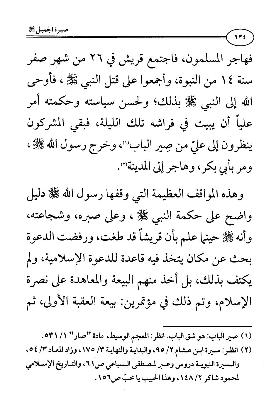 (¬2) انظر: سيرة ابن هشام 2/ 95، والبداية والنهاية 3/ 175، وزاد المعاد 3/ 54، والسيرة النبوية دروس وعبر لمصطفى السباعي ص61، والتاريخ الإسلامي لمحمود شاكر 2/ 148، وهذا الحبيب يا محبّ ص156.