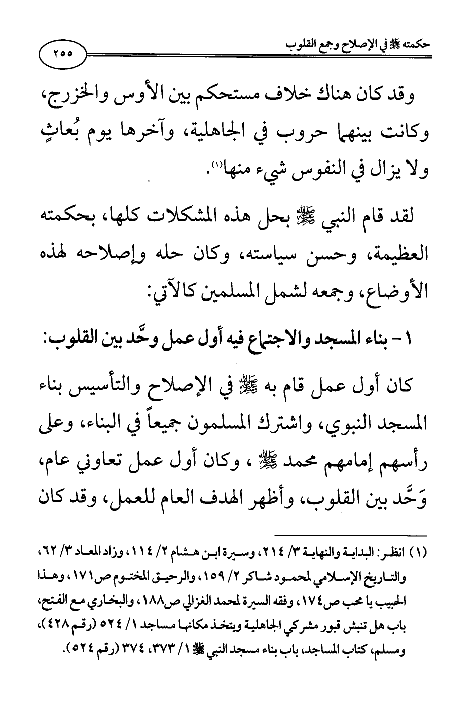 (¬1) انظر: البداية والنهاية 3/ 214، وسيرة ابن هشام 2/ 114، وزاد المعاد 3/ 62، والتاريخ الإسلامي لمحمود شاكر 2/ 159، والرحيق المختوم ص171، وهذا الحبيب يا محب ص174، وفقه السيرة لمحمد الغزالي ص188، والبخاري مع الفتح، باب هل تنبش قبور مشركي الجاهلية ويتخذ مكانها مساجد 1/ 524 (رقم 428)، ومسلم، كتاب المساجد، باب بناء مسجد النبي - صلى الله عليه وسلم - 1/ 373، 374 (رقم 524).