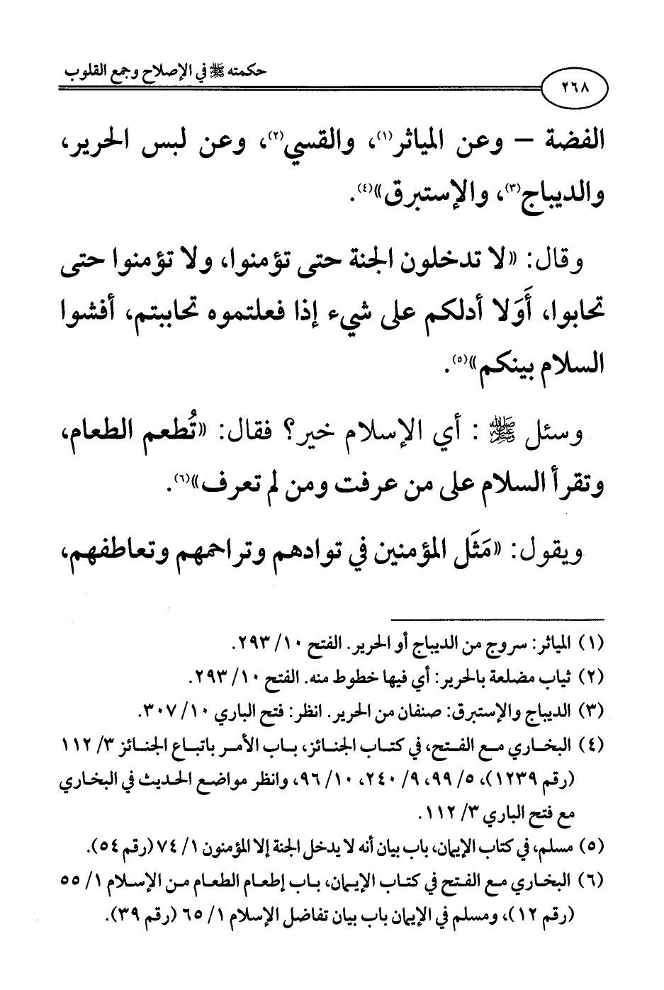 (¬6) البخاري مع الفتح في كتاب الإيمان، باب إطعام الطعام من الإسلام 1/ 55 (رقم 12)، ومسلم في الإيمان باب بيان تفاضل الإسلام 1/ 65 (رقم 39).