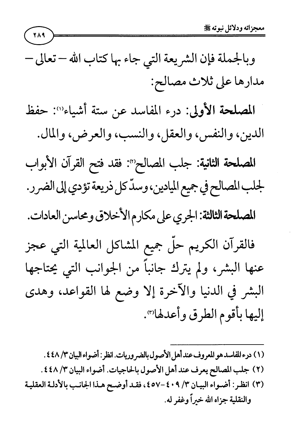 (¬1) درء المفاسد هو المعروف عند أهل الأصول بالضروريات. انظر: أضواء البيان 3/ 448.