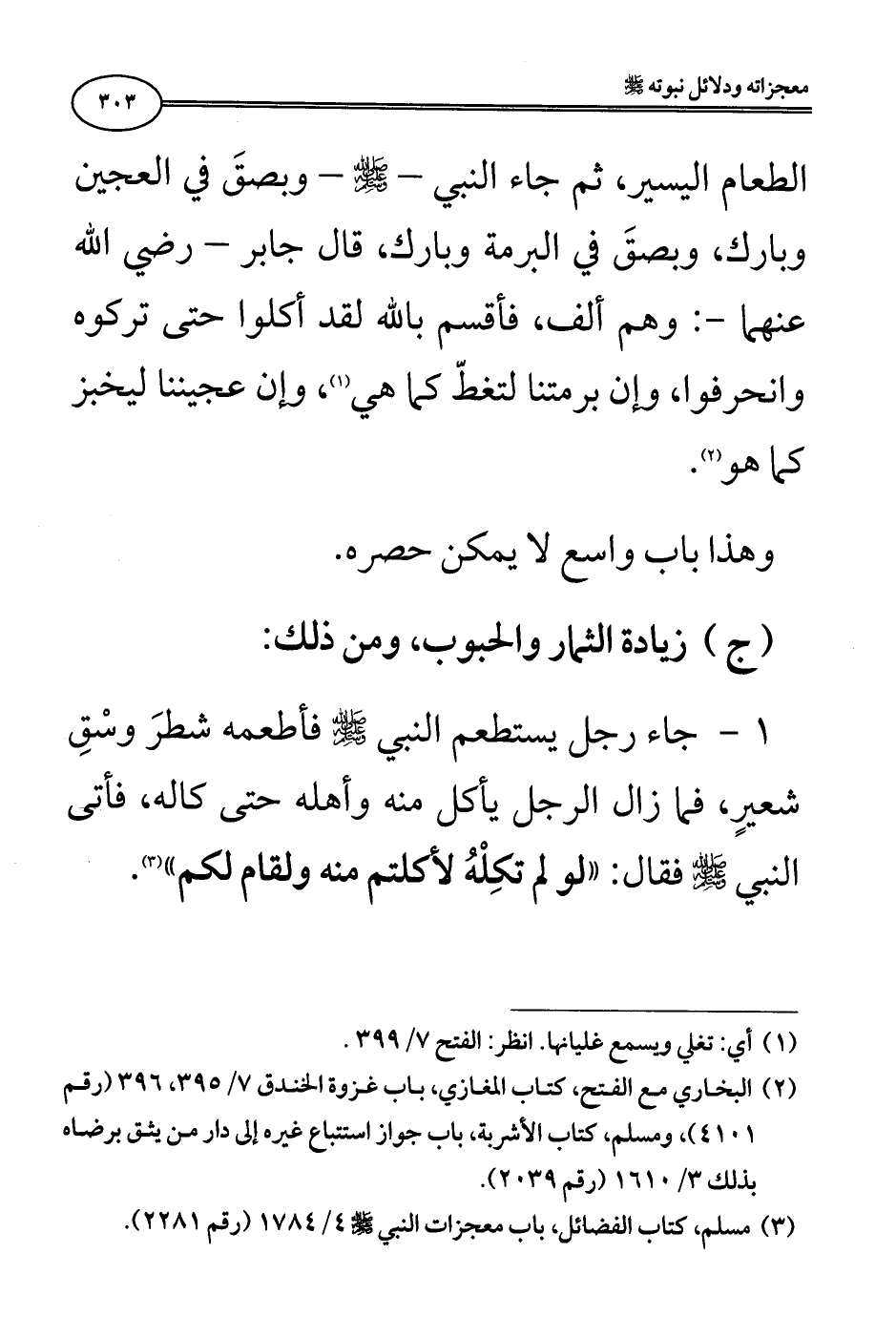 (¬3) مسلم، كتاب الفضائل، باب معجزات النبي - صلى الله عليه وسلم - 4/ 1784 (رقم 2281).