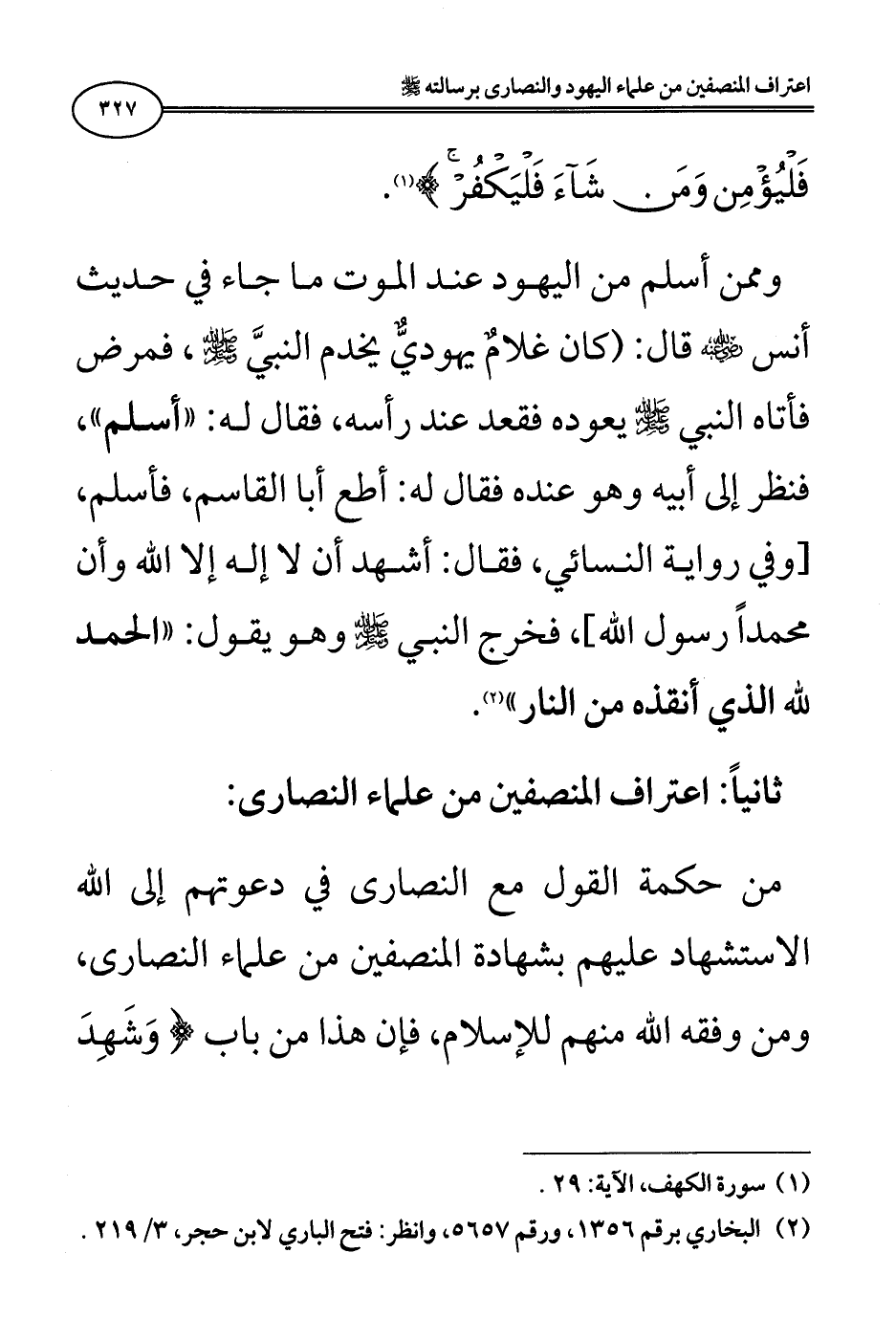 ثانيًا: اعتراف المنصفين من علماء النصارى: من حكمة القول مع النصارى في دعوتهم إلى الله الاستشهاد عليهم بشهادة المنصفين من علماء النصارى، ومن وفقه الله منهم للإسلام، فإن هذا من باب {وَشَهِدَ