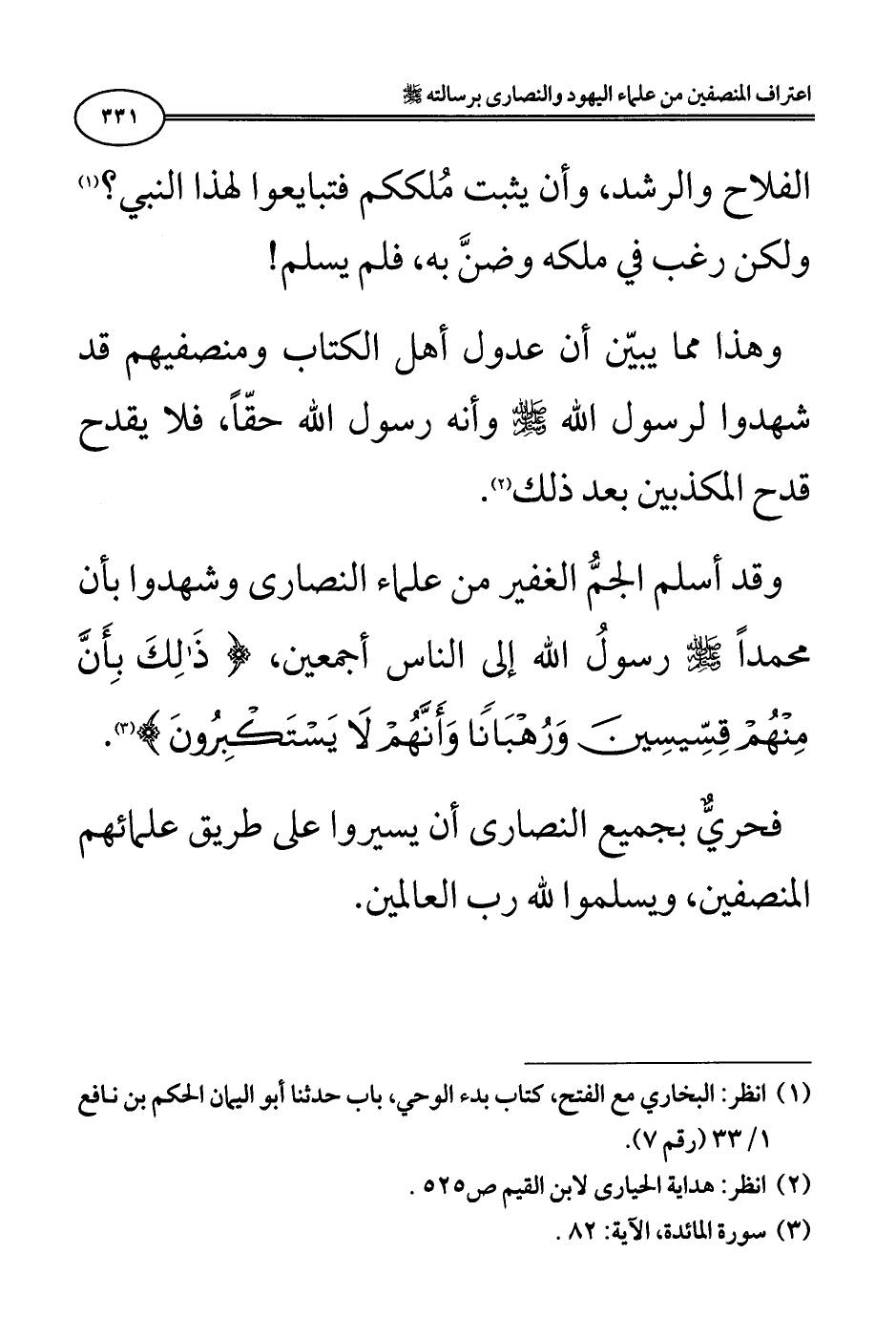 فحريٌّ بجميع النصارى أن يسيروا على طريق علمائهم المنصفين، ويسلموا لله رب العالمين.