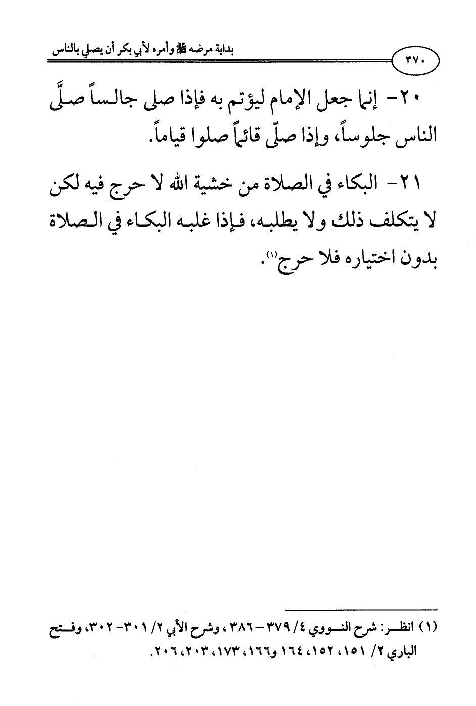 20 - إنما جعل الإمام ليؤتم به فإذا صلى جالسًا صلَّى الناس جلوسًا، وإذا صلَّى قائمًا صلوا قيامًا.