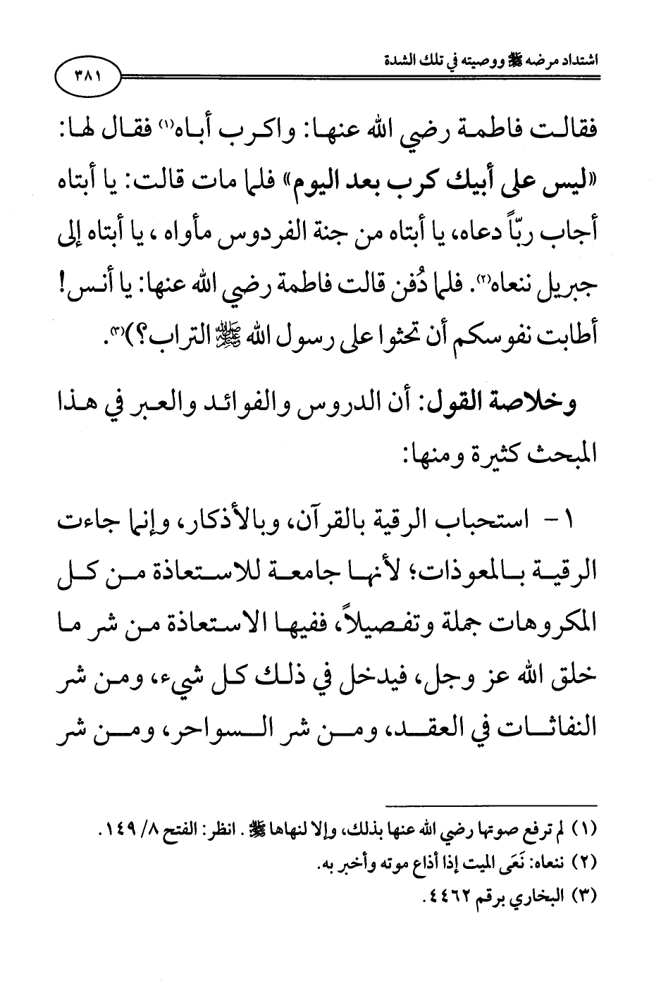 (¬1) لم ترفع صوتها رضي الله عنها بذلك, وإلا لنهاها - صلى الله عليه وسلم -. انظر: الفتح 8/ 149.