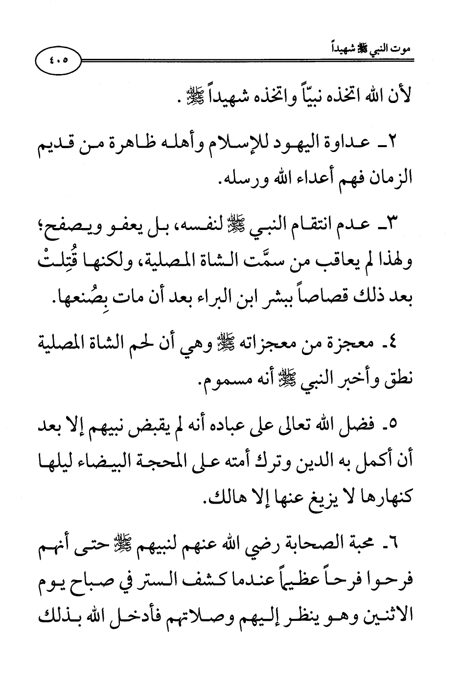 3 - عدم انتقام النبي صلى الله عليه وسلم لنفسه، بل يعفو ويصفح؛ ولهذا لم يعاقب من سمَّت الشاة المصلية، ولكنها قُتِلتْ بعد ذلك قصاصًا ببشر ابن البراء بعد أن مات بِصُنعها: