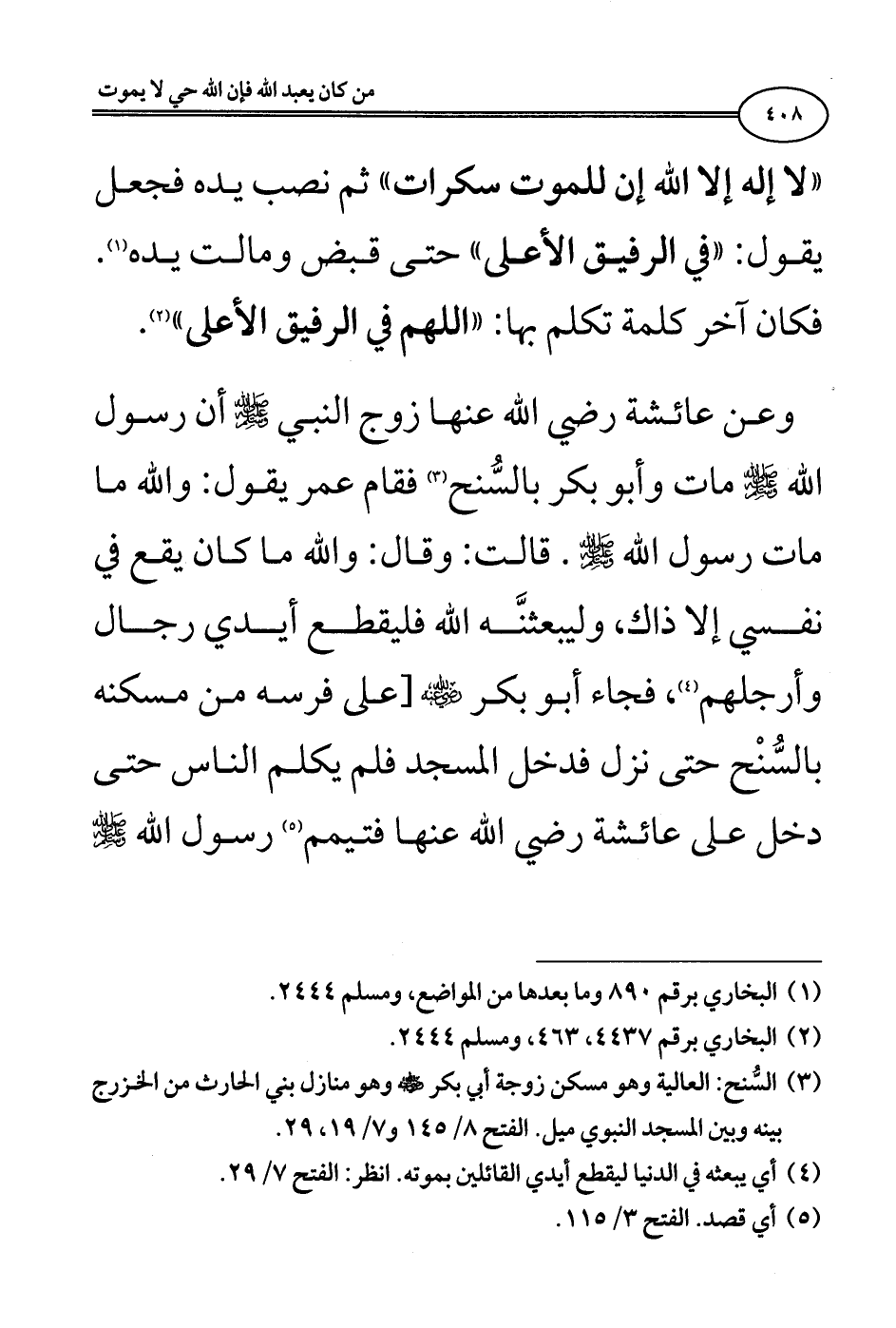 (¬3) السُّنح: العالية وهو مسكن زوجة أبي بكر - رضي الله عنه - وهو منازل بني الحارث من الخزرج بينه وبين المسجد النبوي ميل. الفتح 8/ 145 و7/ 19, 29.