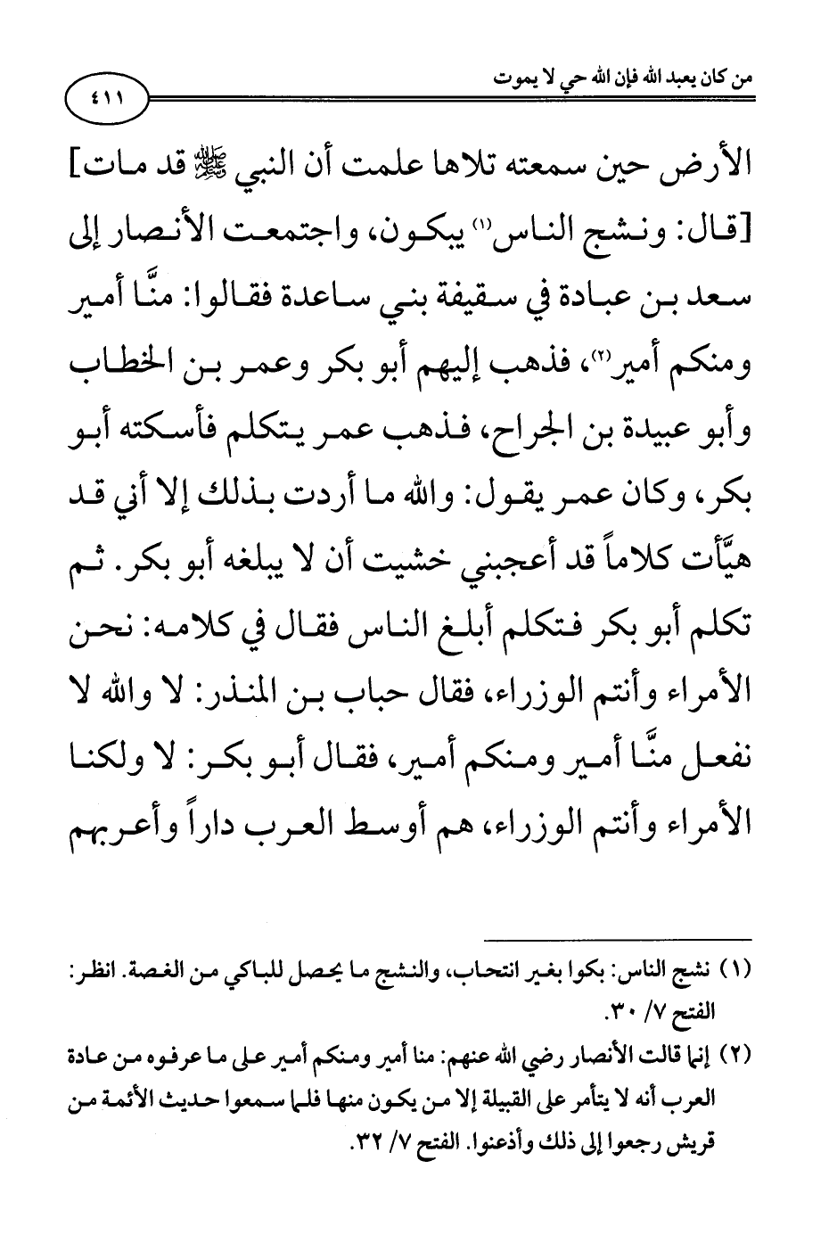 (¬2) إنما قالت الأنصار رضي الله عنهم: منا أمير ومنكم أمير على ما عرفوه من عادة العرب أنه لا يتأمر على القبيلة إلا من يكون منها فلما سمعوا حديث الأئمة من قريش رجعوا إلى ذلك وأذعنوا. الفتح 7/ 32.