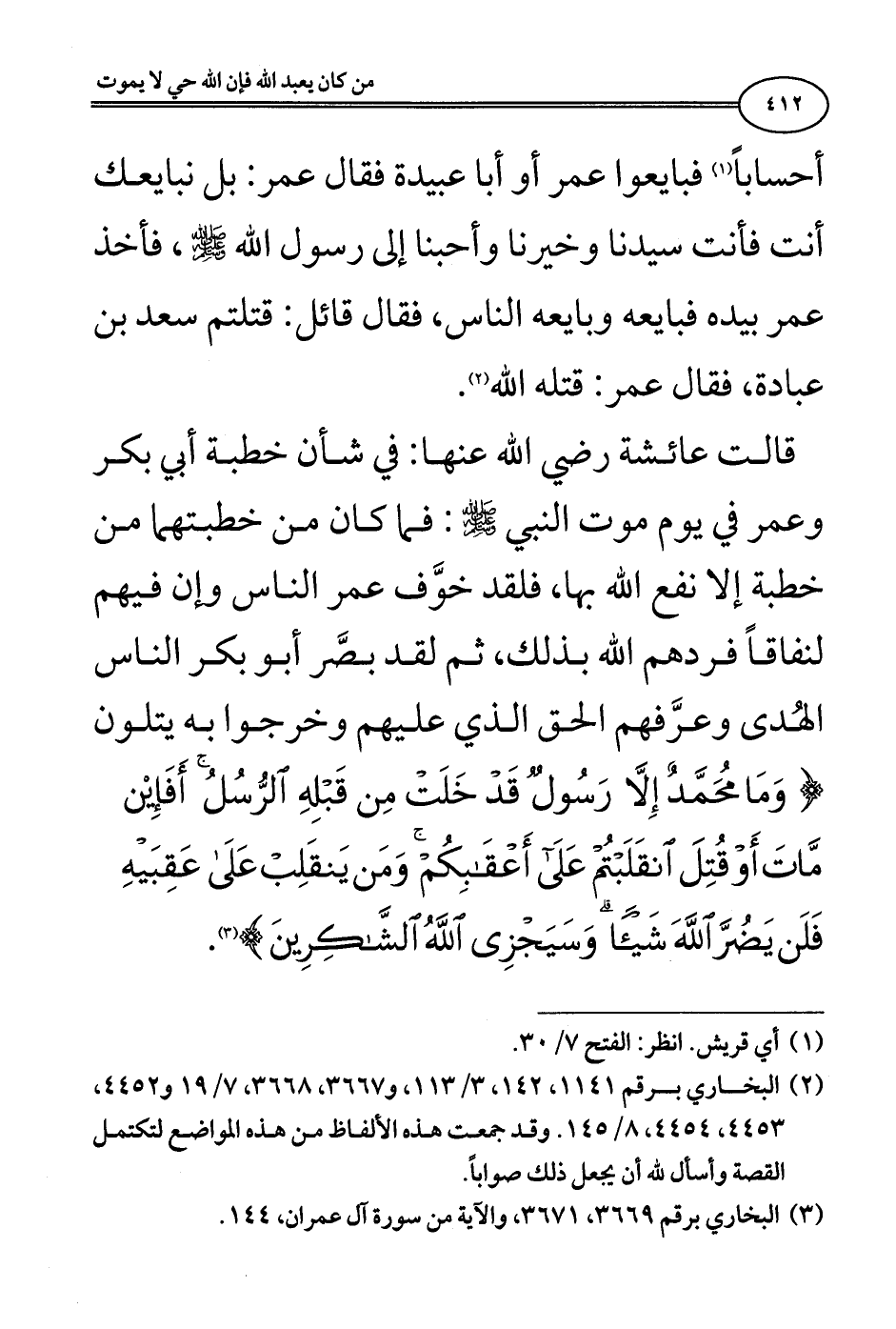 (¬3) البخاري برقم 3669, 3671, والآية من سورة آل عمران, 144.