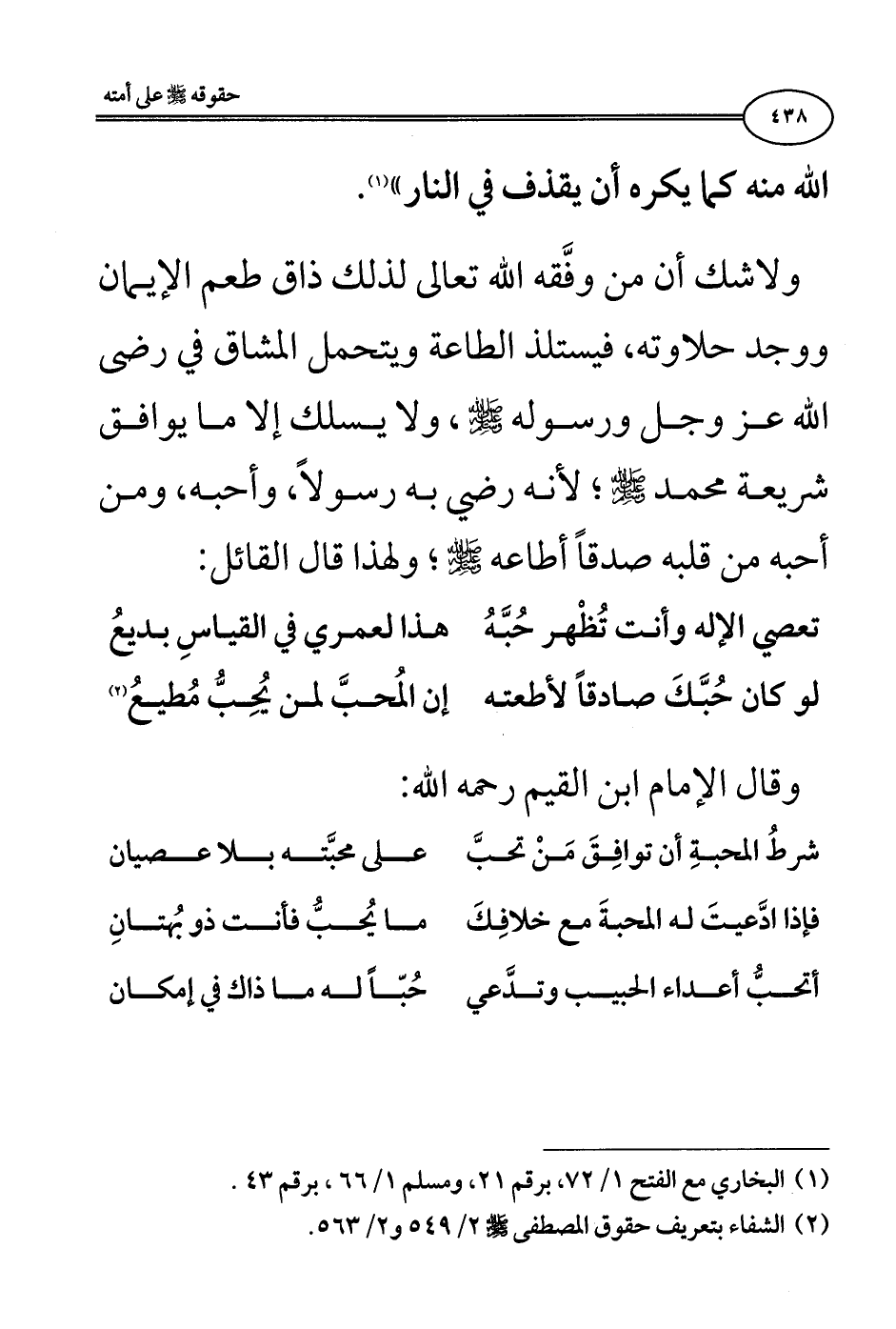 (¬2) الشفاء بتعريف حقوق المصطفى - صلى الله عليه وسلم - 2/ 549 و2/ 563.
