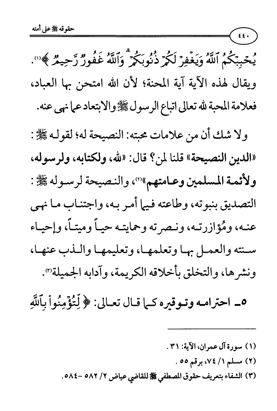 (¬2) الشفاء بتعريف حقوق المصطفي - صلى الله عليه وسلم - للقاضي عياض 2/ 582 - 584.