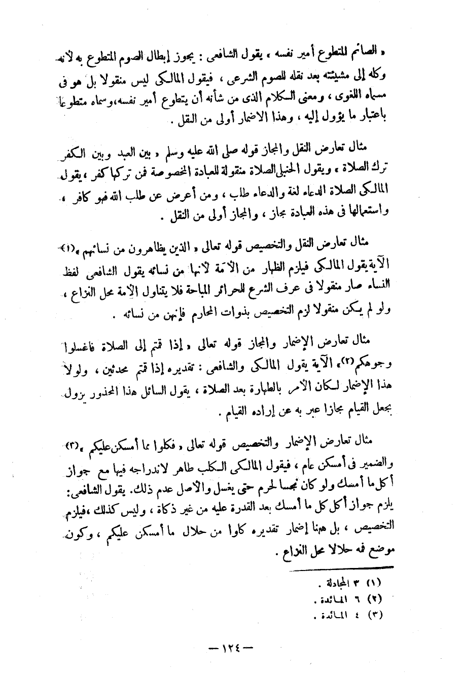 مثال تعارض النقل والمجاز قوله b «بين العبد وبين الكفر ترك الصلاة» ويقول الحنبلي الصلاة منقولة للعبادة المخصوصة فمن تركها كفر، يقول المالكي الصلاة الدعاء