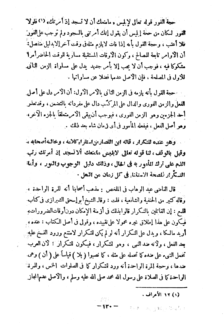 وهو عنده للتكرار، قاله ابن القصار من استقراء كلامه، وخاله أصحابه وقيل بالوقف، لنا قوله تعالى لإبليس ما منعك ألا تسجد إذ أمرتك رتب الذم على ترك المأمور به في الحال، وذلك دليل الوجوب والفور، وأما التكرار للصحة للاستثناء في كل زمان من الفعل.