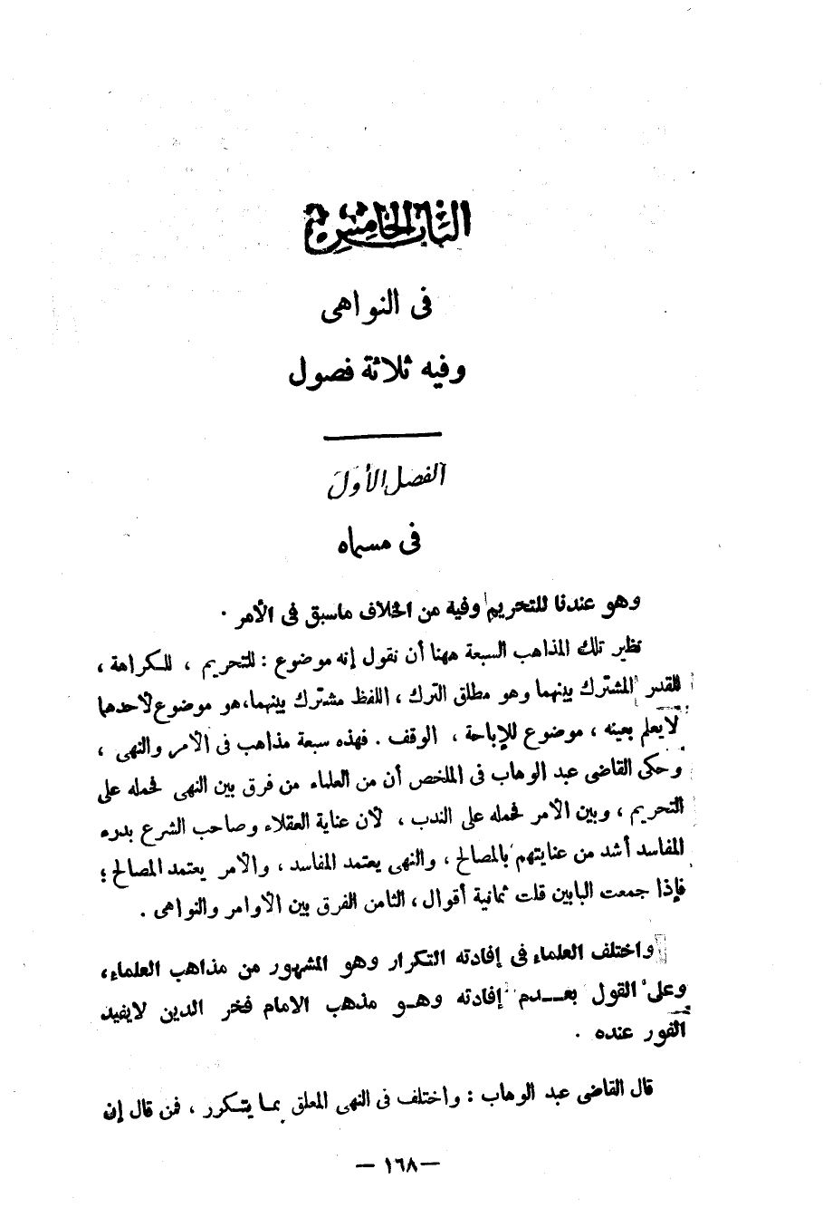 الباب الخامس في النواهي وفيه ثلاثة فصول