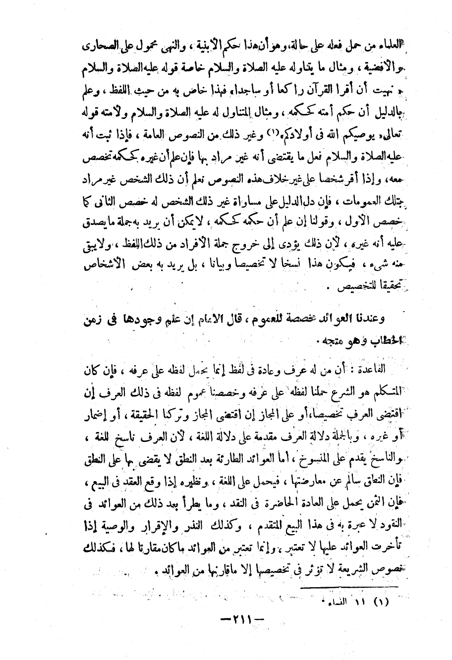 وعندنا العوائد مخصصة للعموم، قال الإمام إن علم وجودها في زمن الخطاب وهو متجه.