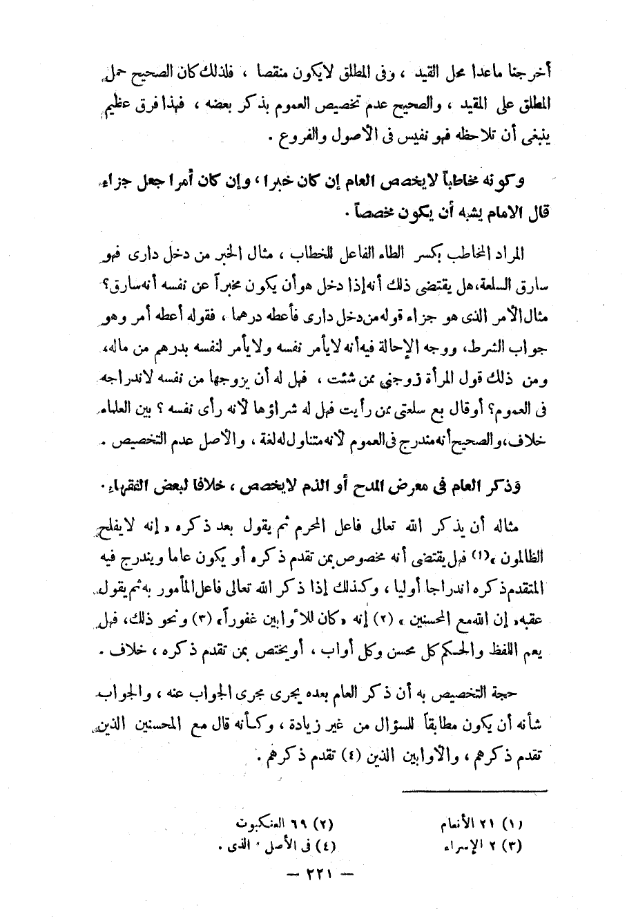 مثاله أن يذكر الله تعالى فاعل المحرم ثم يقول بعد ذكره «إنه لا يفلح الظالمون» (¬1) فهل يقتضي أنه مخصوص بمن تقدم ذكره أو يكون عاماً ويندرج فيه المتقدم ذكره اندراجاً أولياً، وكذلك إذا ذكر الله تعالى فاعل المأمور به ثم يقول عقبه «إن الله مع المحسنين» (¬2) إنه «كان للأوابين غفوراً» (¬3) ونحو ذلك فهل يعم اللفظ والحكم كلّ محسن وكل أواب، أو يختص بمن تقدم ذكره، خلاف.