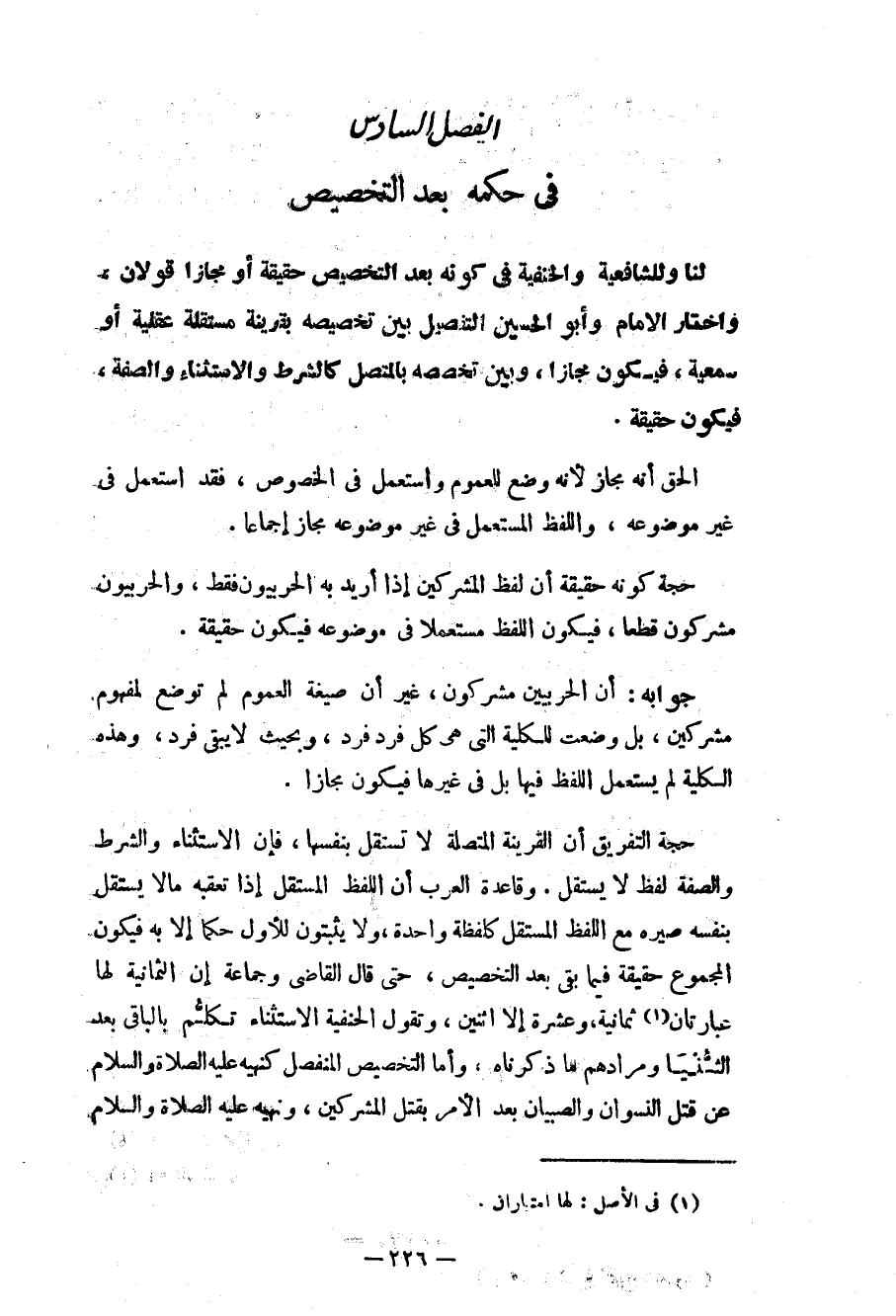 لنا وللشافعية والحنفية في كونه بعد التخصيص حقيقة أو مجازاً قولان، واختار الإمام وأبو الحسين التفصيل بين تخصيصه بقرينة مستقلة عقلية أو سمعية، فيكون مجازاً، وبين تخصصه بالمتصل كالشرط والاستثناء والصفة، فيكون حقيقة.