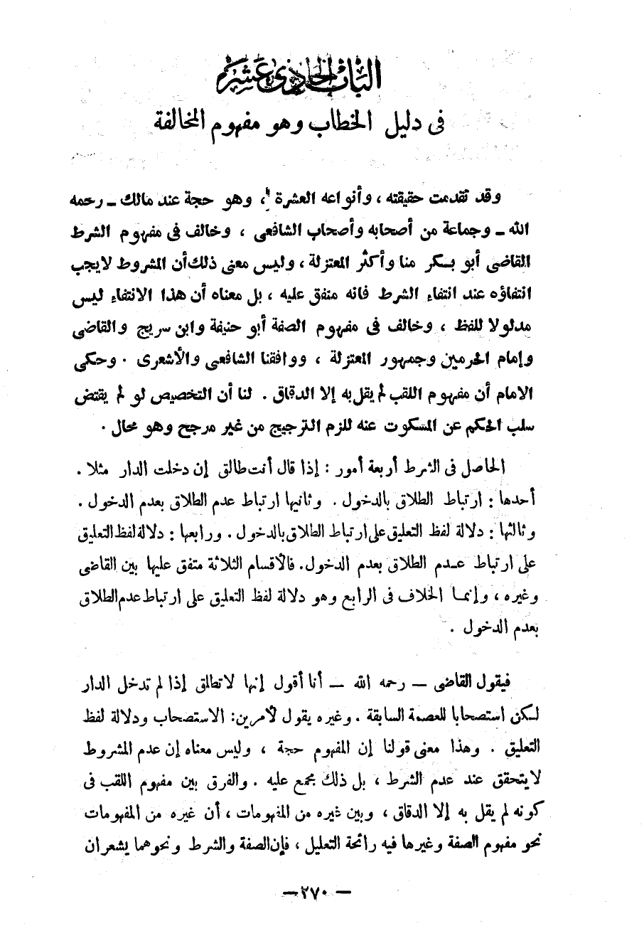 الباب الحادي عشر في دليل الخطاب وهو مفهوم المخالفة