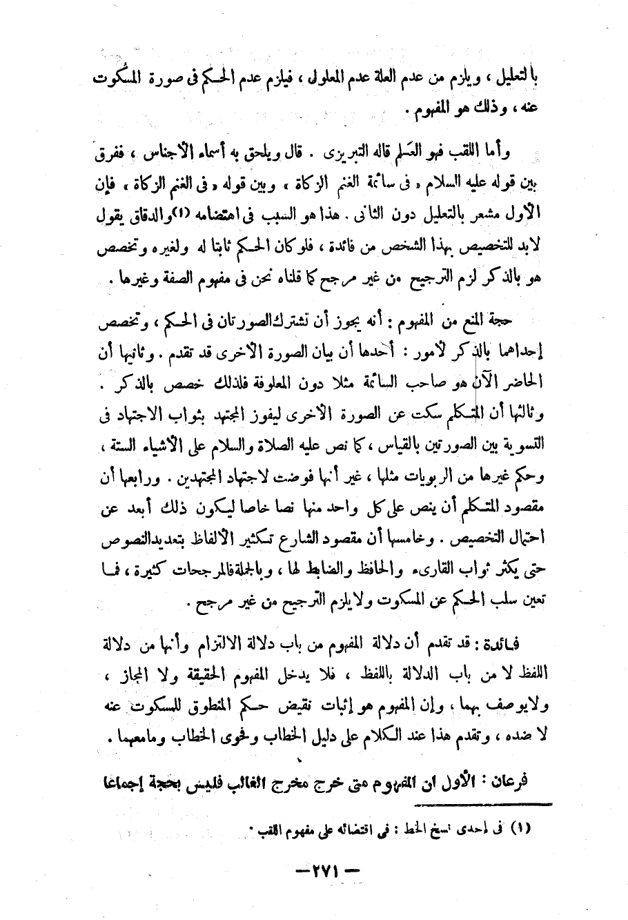 (¬1) في إحدى نسخ الخط: في اقتضائه على مفهوم اللقب.