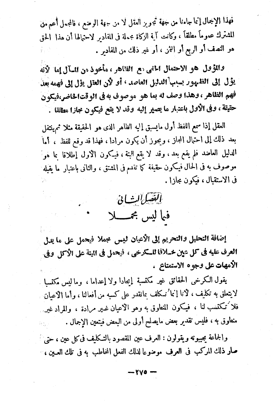 فهذا الإجمال إنّما جاءنا من جهة تجويز العقل لا من جهة الوضع، فالمجمل أعم من المشترك عموماً مطلقاً، وكانت آية الزكاة مجملة في المقادير لاحتمالها أن هذا الحق هو النصف أو الربع أو الثمن، أو غير ذلك من المقادير.