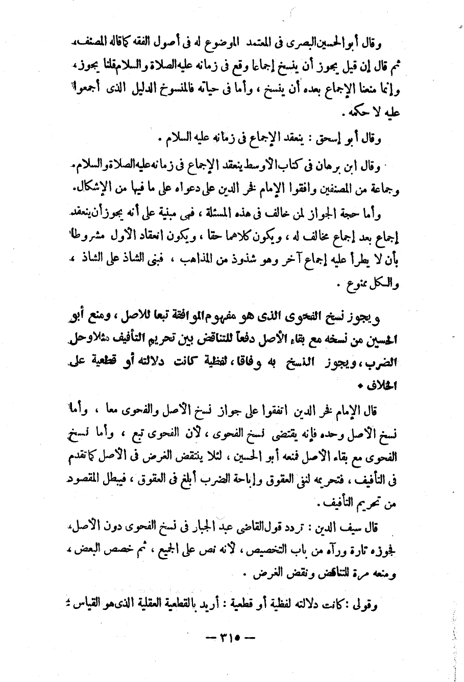 وقال ابن برهان في كتاب الأوسط ينعقد الإجماع في زمانه عليه الصلاة والسلام، وجماعة المصنفين وافقوا الإمام فخر الدين على دعواه على ما فيها من الإشكال.