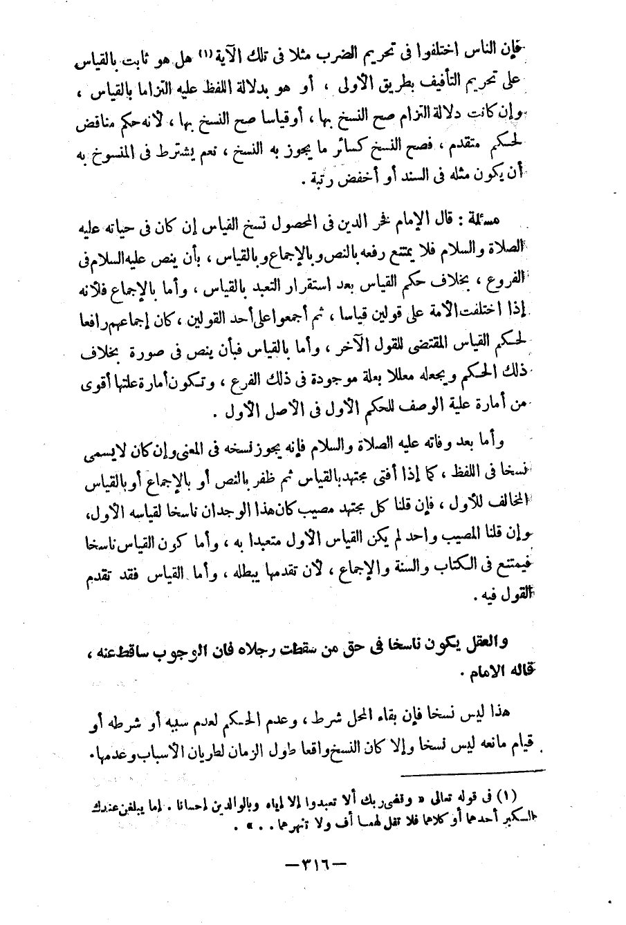 مسألة: قال الإمام فخر الدين في المحصول نسخ القياس إن كان في حياته عليه الصلاة والسلام فلا يمتنع رفعه بالنص وبالإجماع وبالقياس، بأن ينص - عليه السلام - في