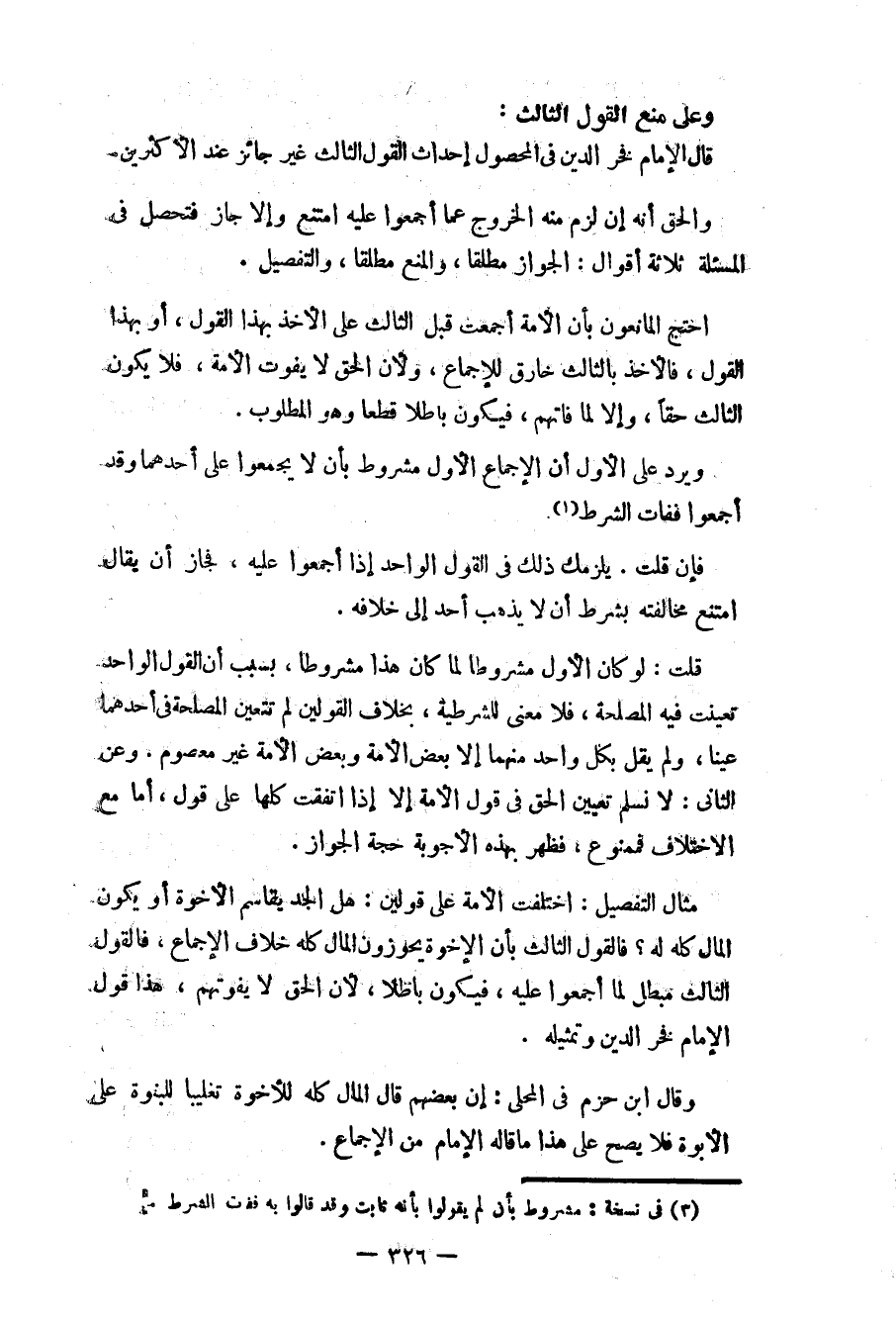 قال الإمام فخر الدين في المحصول إحداث القول الثالث غير جائز عند الأكثرين.