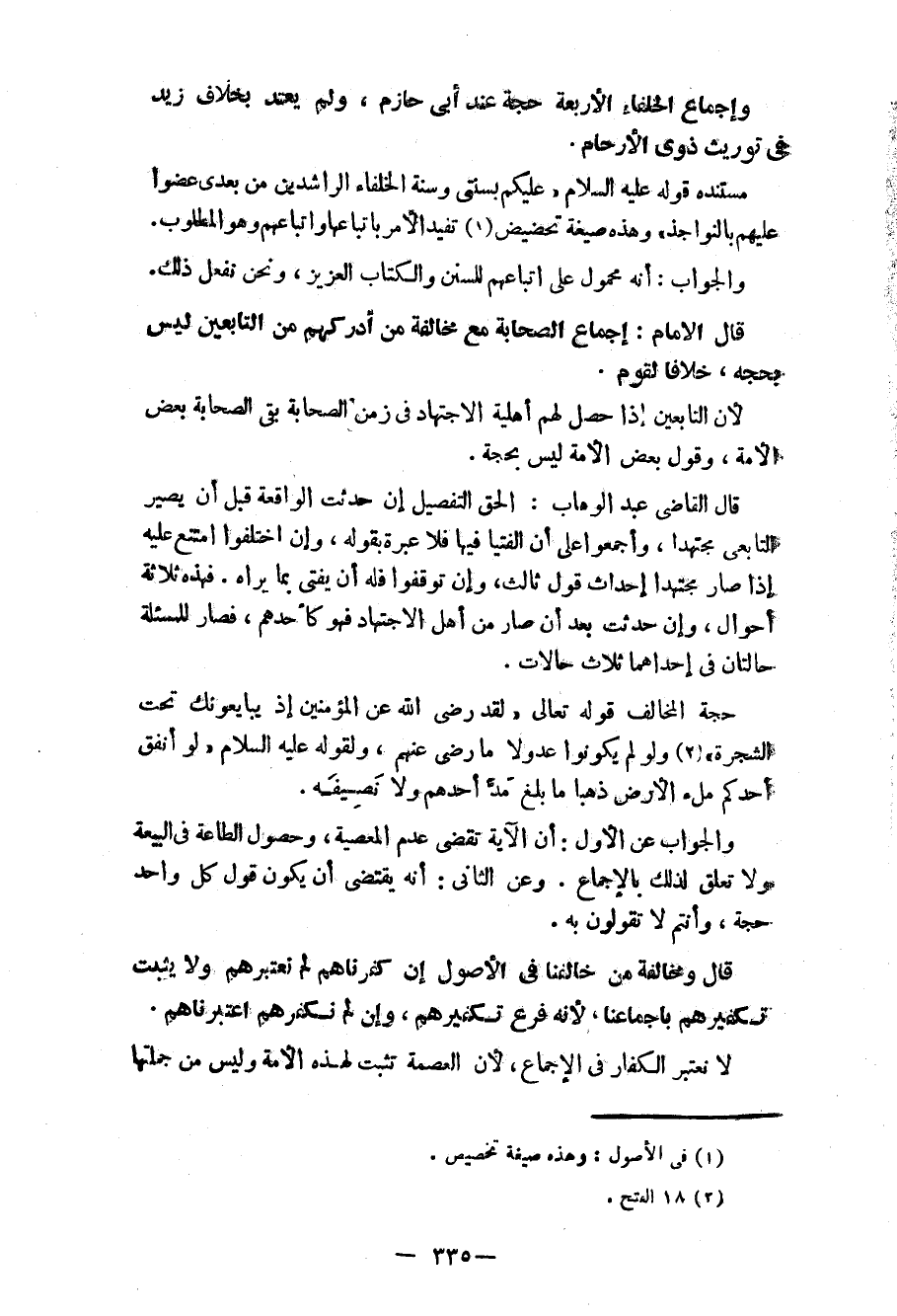 والجواب عن الأوّل: أن الآية تقضي عدم المعصية، وحصول الطاعة في البيعة ولا تعلق لذلك بالإجماع. وعن الثاني: أنه يقتضي أن يكون قولهم كلّ واحد حجة، وأنتم لا تقولون به.