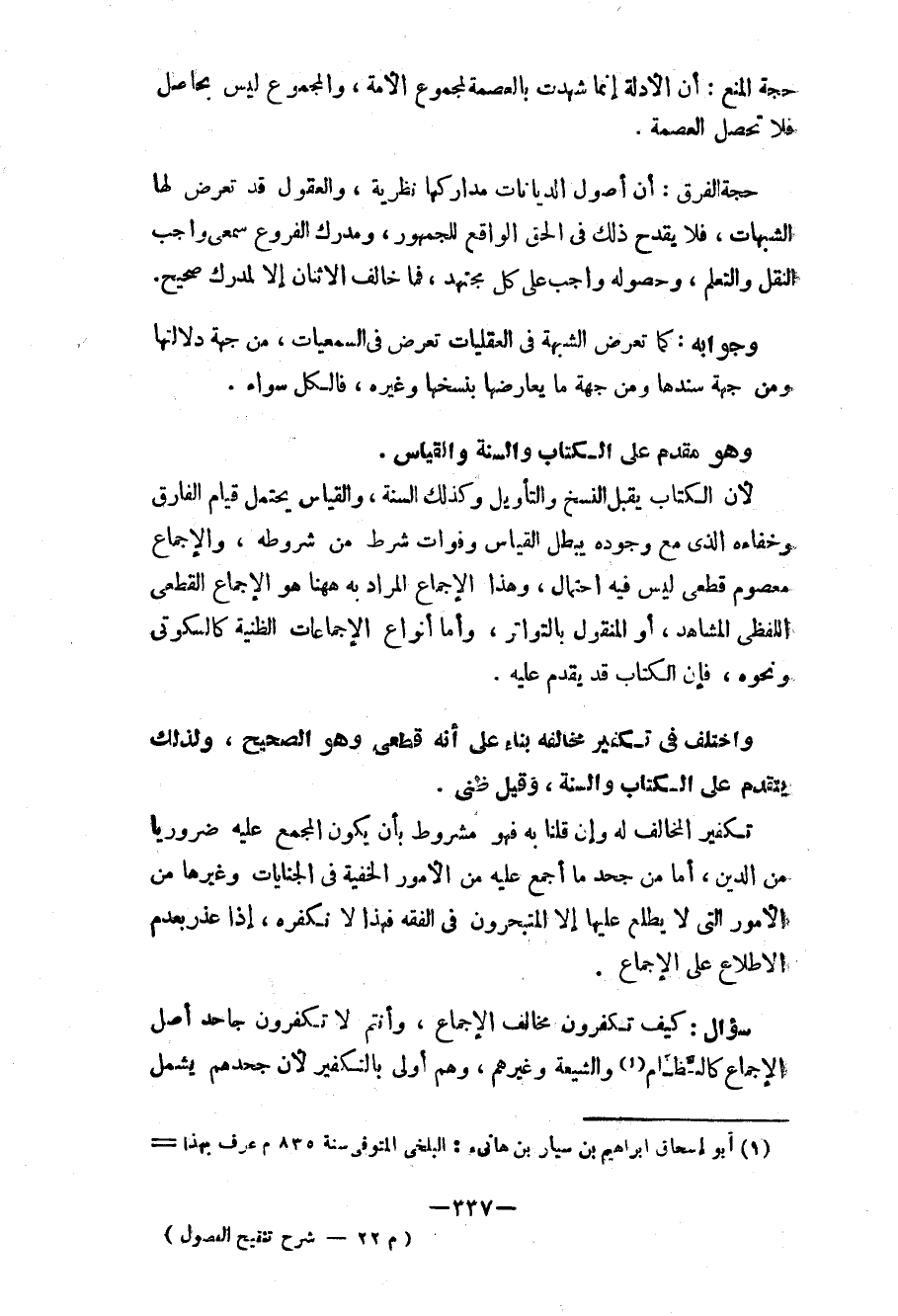 سؤال: كيف تكفرون مخالف الإجماع، وأنتم لا تكفرون جاحد أصل الإجماع كالنَّظّام (¬1) والشيعة وغيرهم، وهم أولى بالتكفير لأن جحدهم يشمل