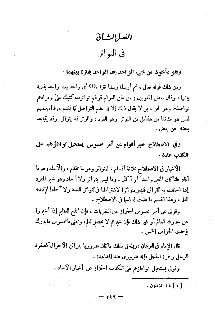 الفصل الثاني في التواتر