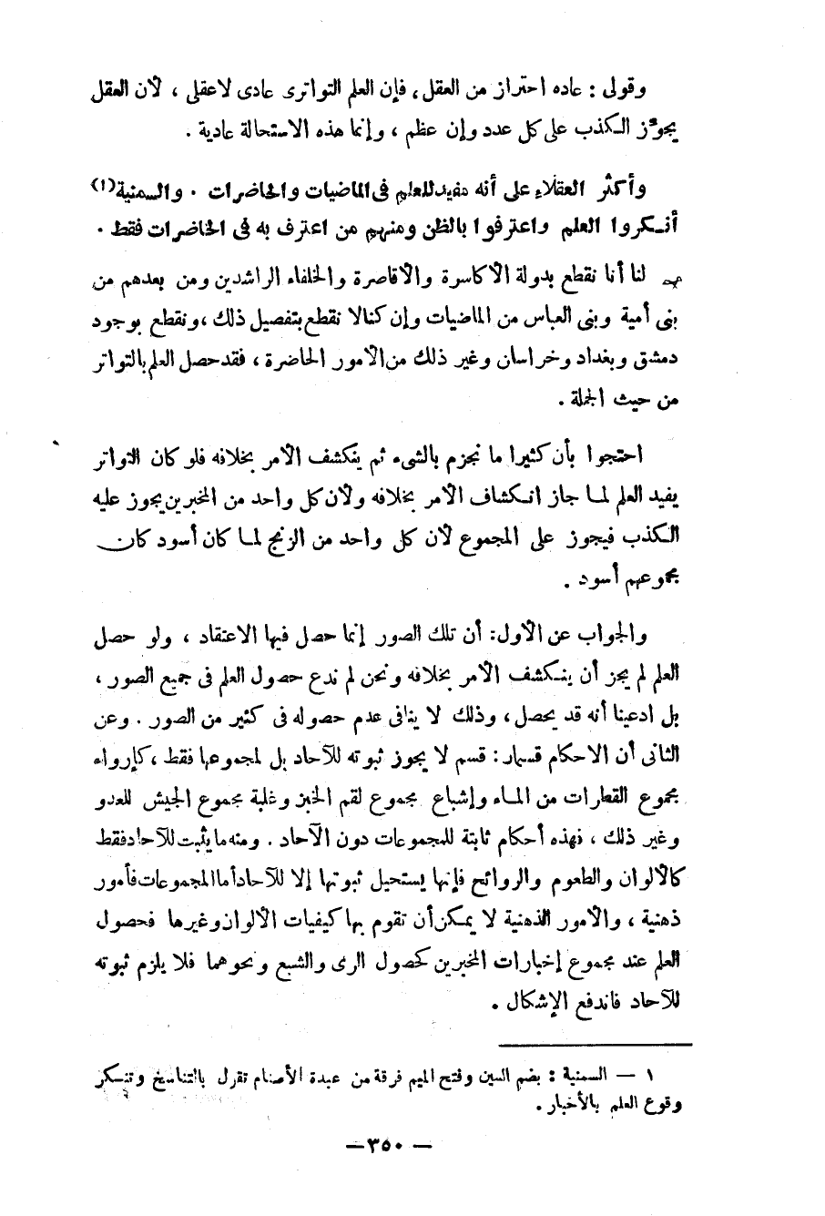 (¬1) السمنية: بضم السين وفتح الميم فرقة من عبدة الأصنام تقول بالتناسخ وتنكر وقوع العلم بالأخبار.