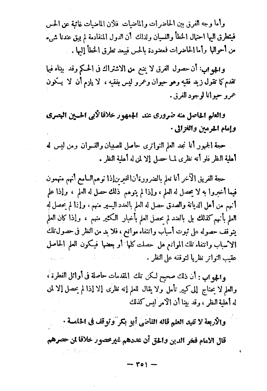 حجة الجمهور أنا نجد العلم التواتري حاصل للصبيان والنسوان ومن ليس له أهلية للنظر فلو أنه نظري لما حصل إلاّ لمن له أهلية النظر.