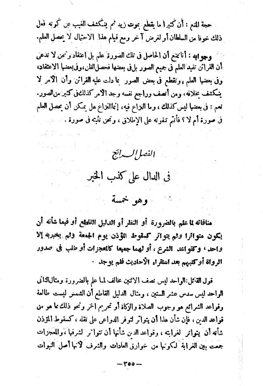 الفصل الرابع في الدال على كذب الخبر وهو خمسة