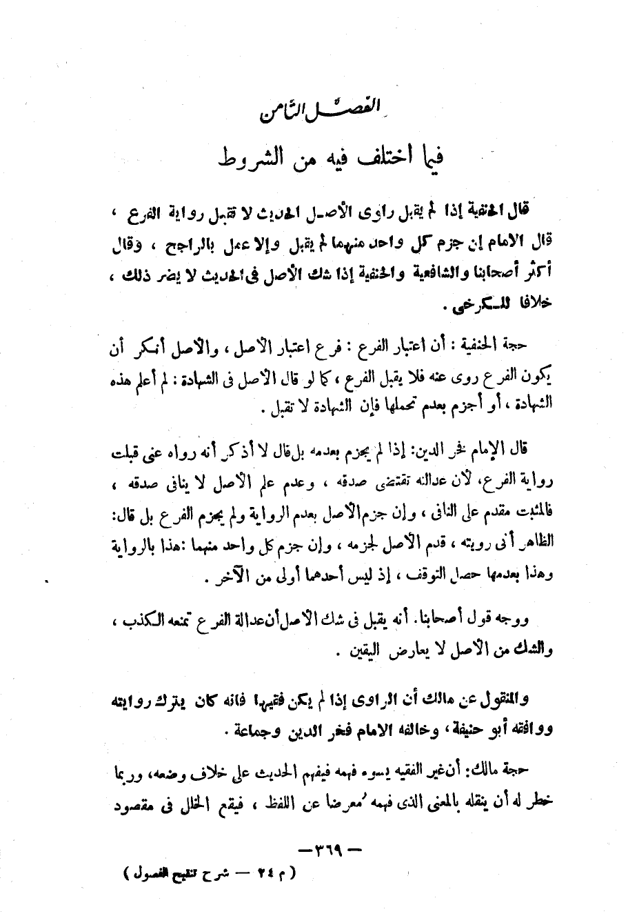 الفصل الثامن فيما اختلف فيه من الشروط