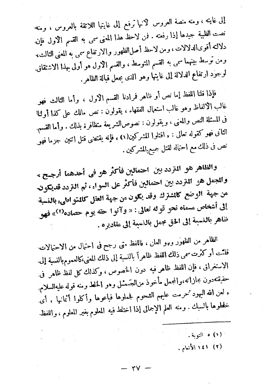 وهو غالب استعمال الفقهاء، يقولون: نص مالك على كذا أولنا في المسألة النص والمعنى، ويقولون: نصوص الشريعة متظافرة بذلك. وأما القسم الثاني فهو كقوله تعالى: «اقتلوا المشركين (¬1) » ، فإنه يقتضي قتل اثنين جزماً فهو نص في ذلك مع احتماله لقتل جميع المشركين.