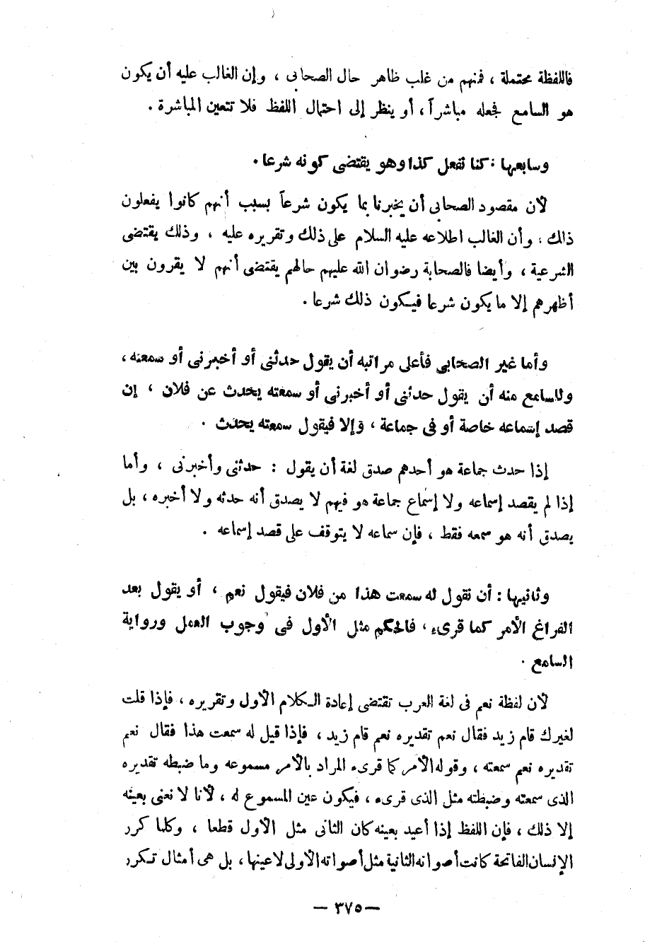 لأن مقصود الصحابي أن يخبرنا بما يكون شرعاً بسبب أنهم كانوا يفعلون ذلك، وأن الغالب اطلاعه - عليه السلام - على ذلك وتقريره عليه، وذلك يقتضي الشرعية، وأيضاً