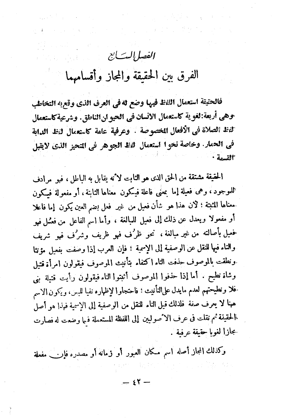 الفصل السابع الفرق بين الحقيقة والمجاز وأقسامهما