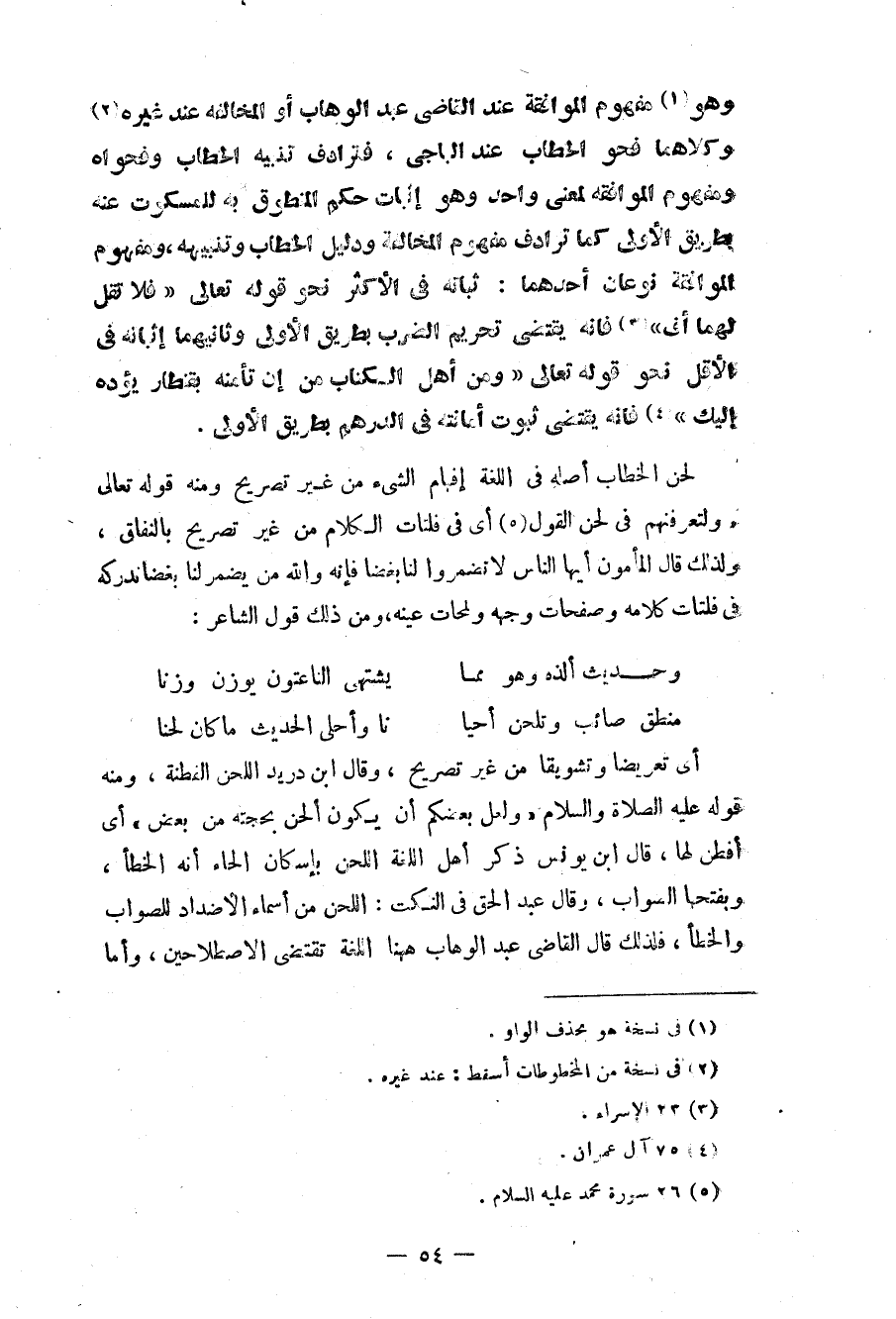 لحن الخطاب أصله في اللغة إفهام الشيء من غير تصريح ومنه قوله تعالى «ولتعرفنهم في لحن القول (¬5) » أي في فلتات الكلام من غير تصريح بالنفاق، ولذلك قال المأمون أيها الناس لا تضمروا لنا بغضاً فإنه والله من يضمر لنا بغضاً ندركه في