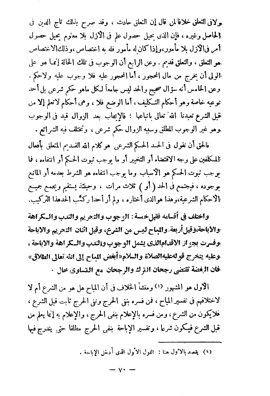 (¬1) يقصد بالأول هنا: ألقول الأول الذي أدخل الإباحة.
