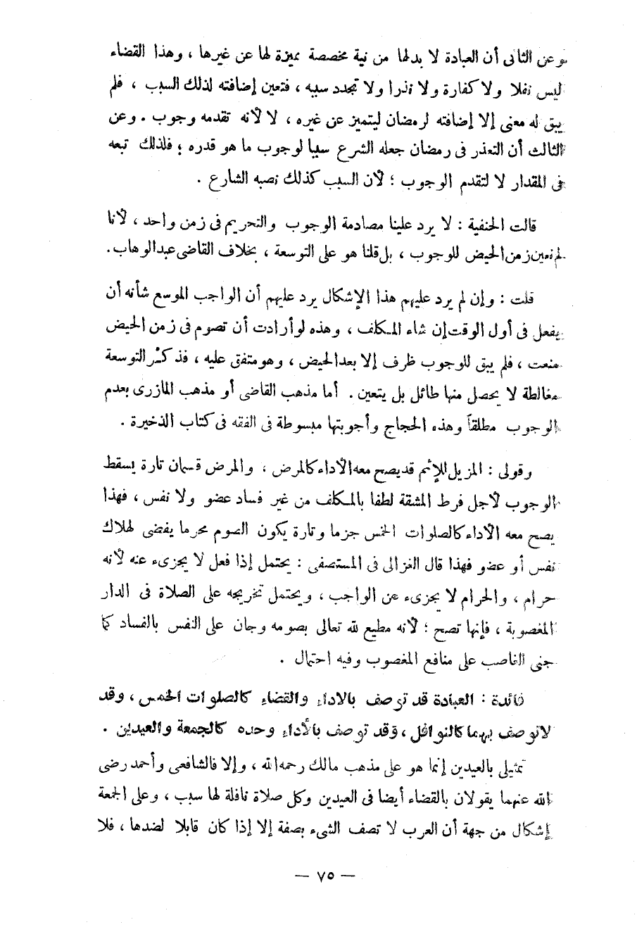 قالت الحنفية: لا يرد علينا مصادمة الوجوب والتحريم في زمن واحد، لأنا لم نعين زمن الحيض للوجوب، بل قلنا هو على التوسعة، بخلاف القاضي عبد الوهاب.