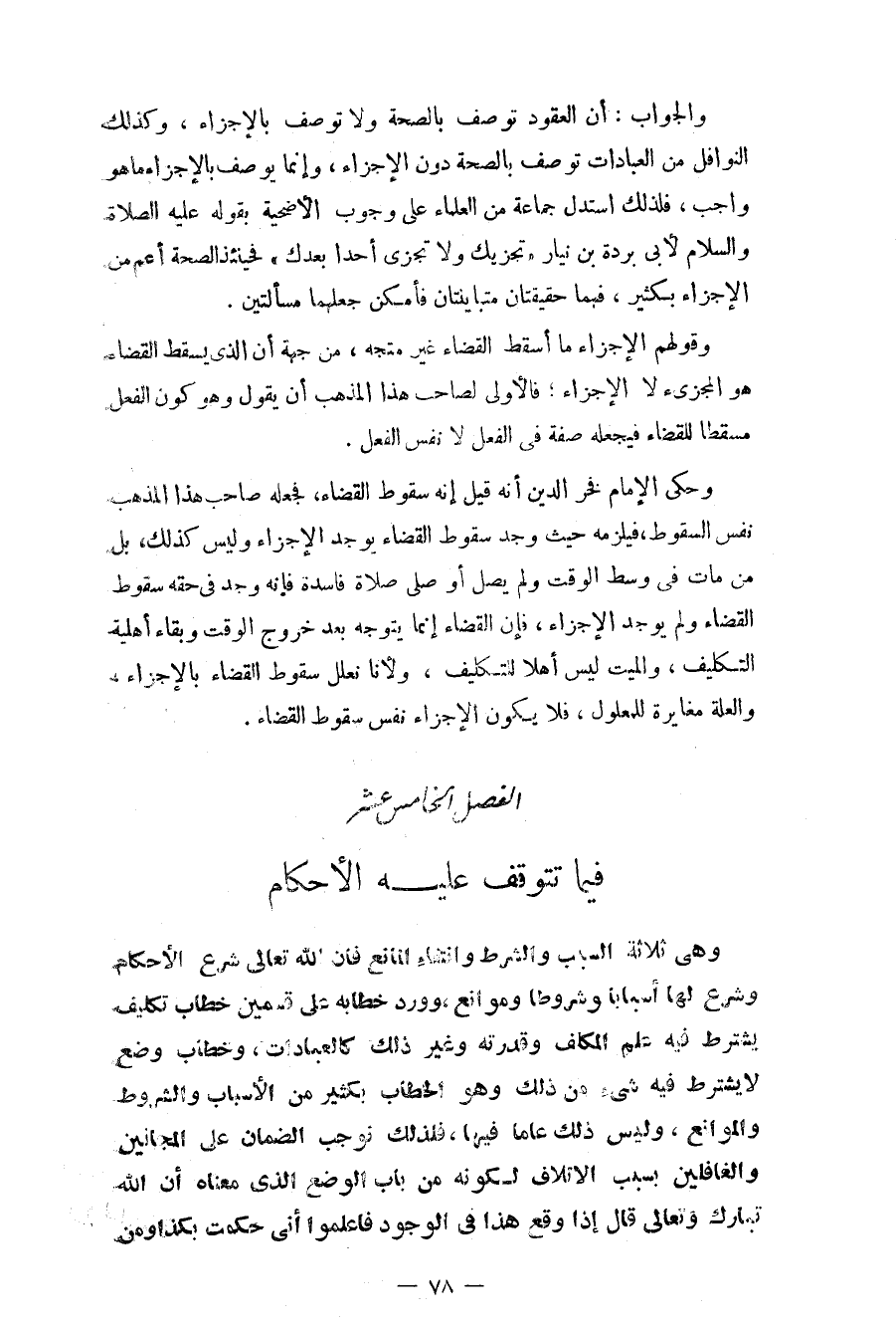 الفصل الخاس عشر فيما تتوقف عليه الأحكام