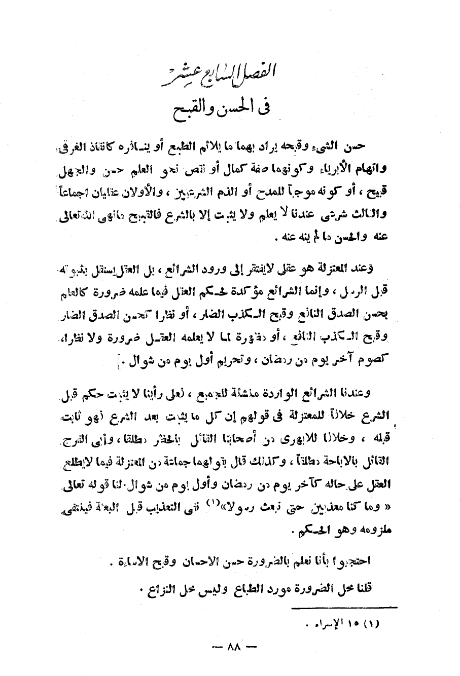 الفصل السابع عشر في الحسن والقبح