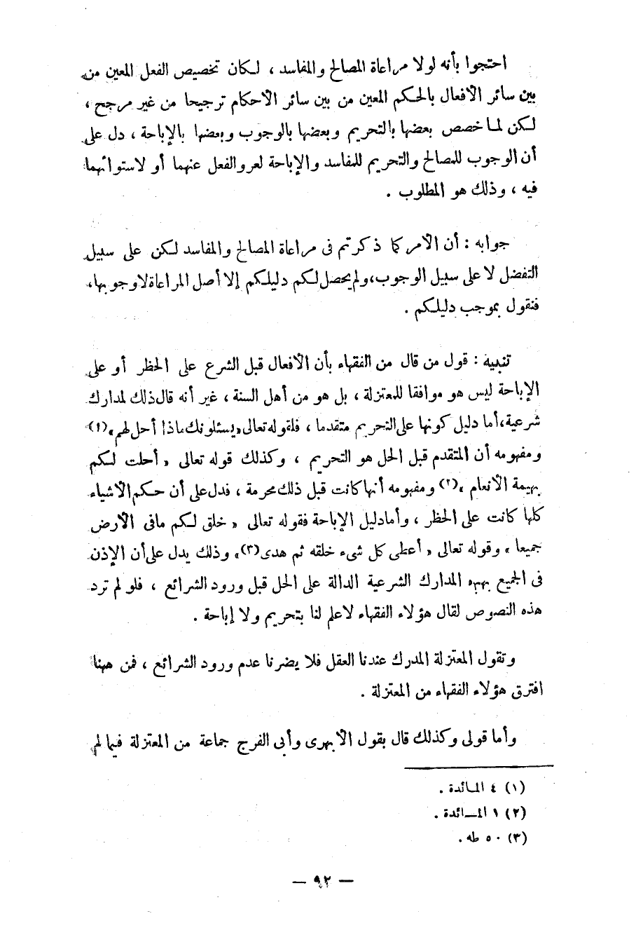 وتقول المعتزلة المدرك عندنا العقل فلا يضرنا عدم ورود الشرائع، فمن هنا افترق هؤلاء الفقهاء من المعتزلة.